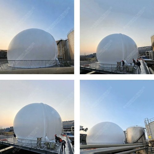 In Linyi City, Shandong Province, a 1,000 m³ double membrane gas holder supporting a paper mill wastewater treatment project has been successfully installed and put into operation. As a key component of the anaerobic wastewater treatment system, the gas holder is designed to safely and stably store biogas generated during the paper wastewater treatment process, ensuring continuous and reliable system operation.